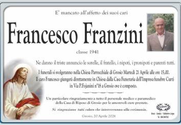 Attraverso i nostri necrologi ci impegniamo a onorare la memoria del defunto, consulta il nostro archivio e lascia il tuo messaggio di cordoglio.