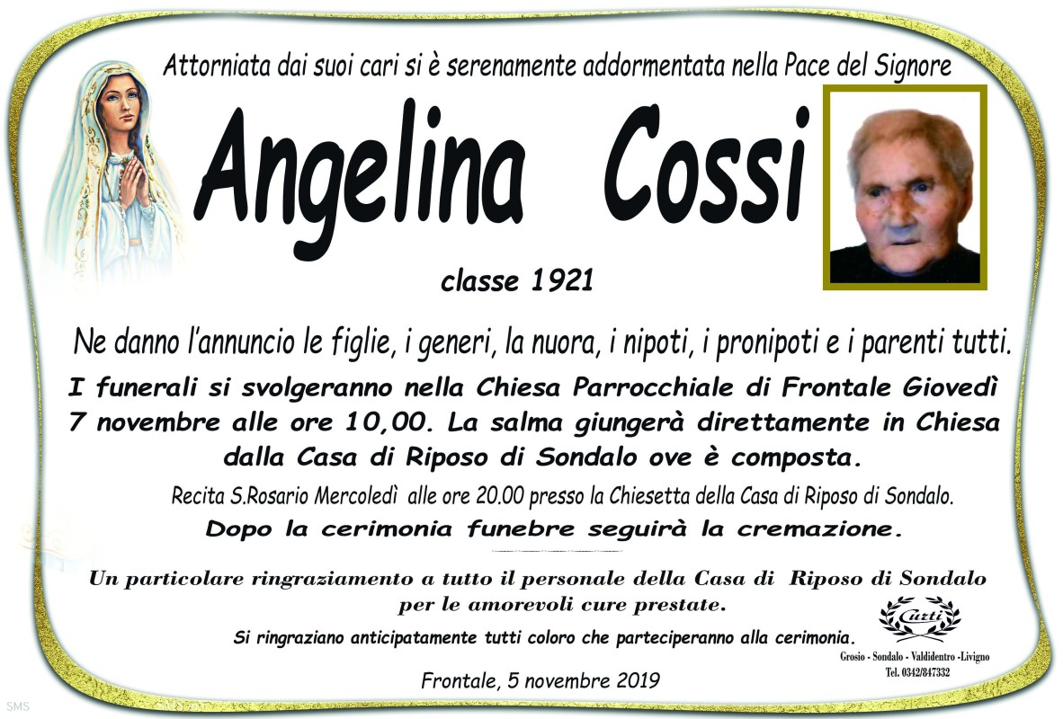 Lascia un messaggio di cordoglio, lo recapiteremo ai familiari di Cossi Angelina