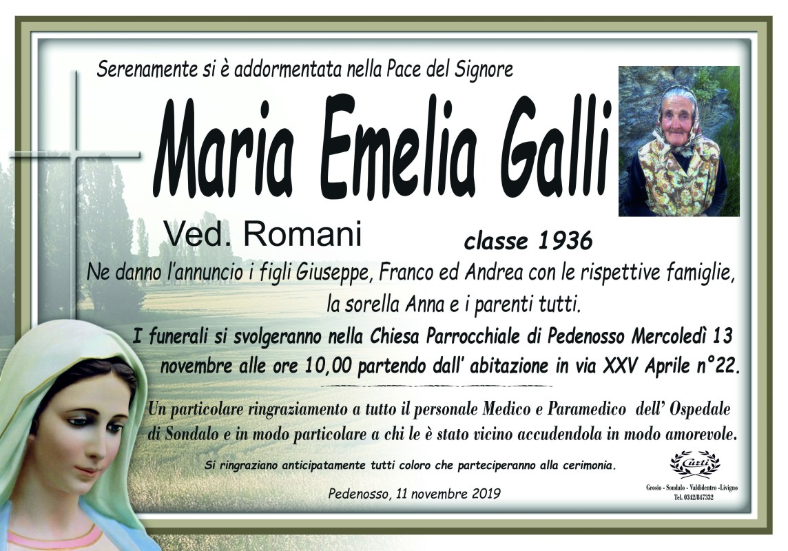 Lascia un messaggio di cordoglio, lo recapiteremo ai familiari di Galli Maria Emelia