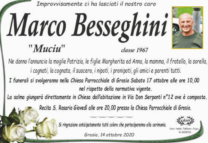 Lascia un messaggio di cordoglio, lo recapiteremo ai familiari di Besseghini Marco