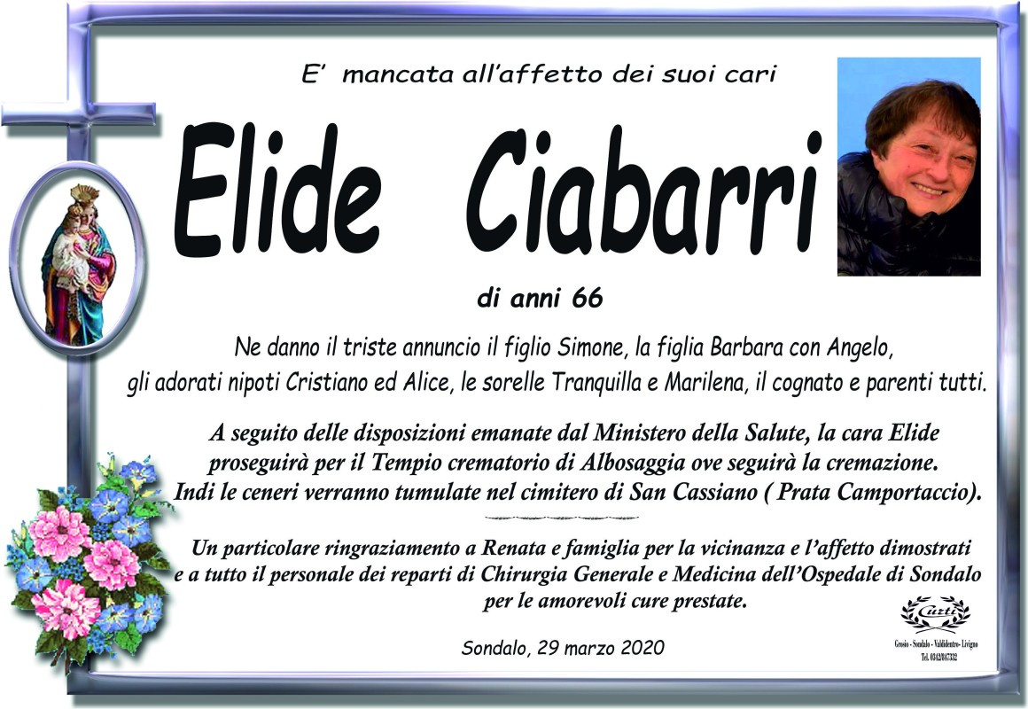 Lascia un messaggio di cordoglio, lo recapiteremo ai familiari di Ciabarri Elide