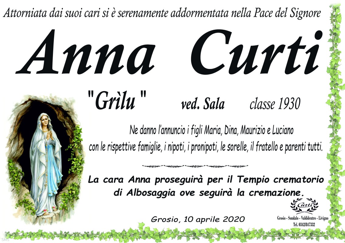 Lascia un messaggio di cordoglio, lo recapiteremo ai familiari di Curti Anna