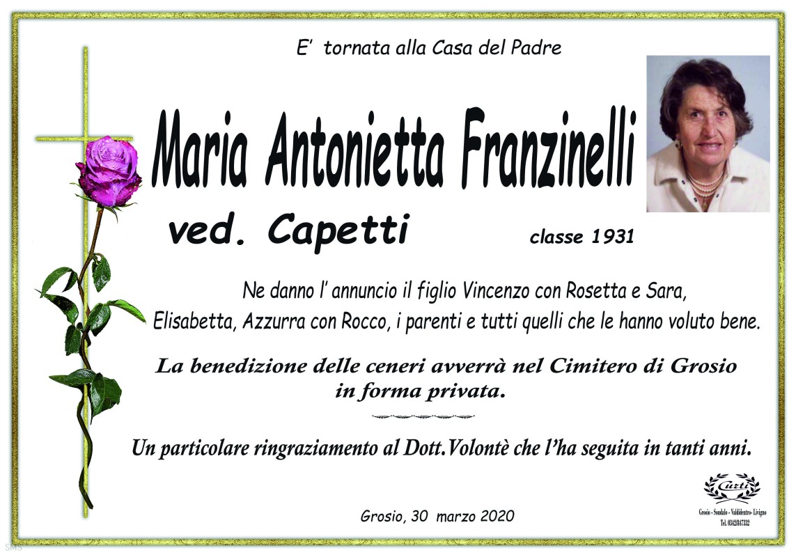 Lascia un messaggio di cordoglio, lo recapiteremo ai familiari di Franzinelli Maria Antonietta