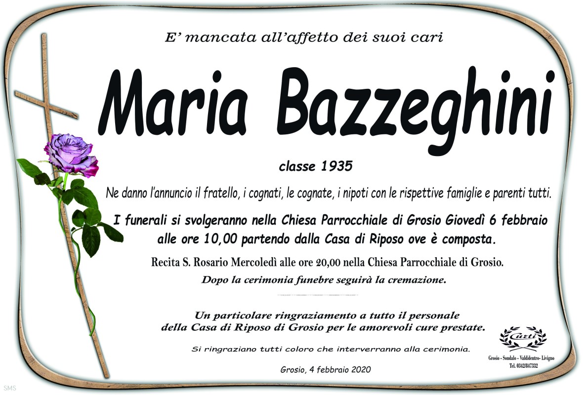 Lascia un messaggio di cordoglio, lo recapiteremo ai familiari di Lutto Bazzeghini Maria