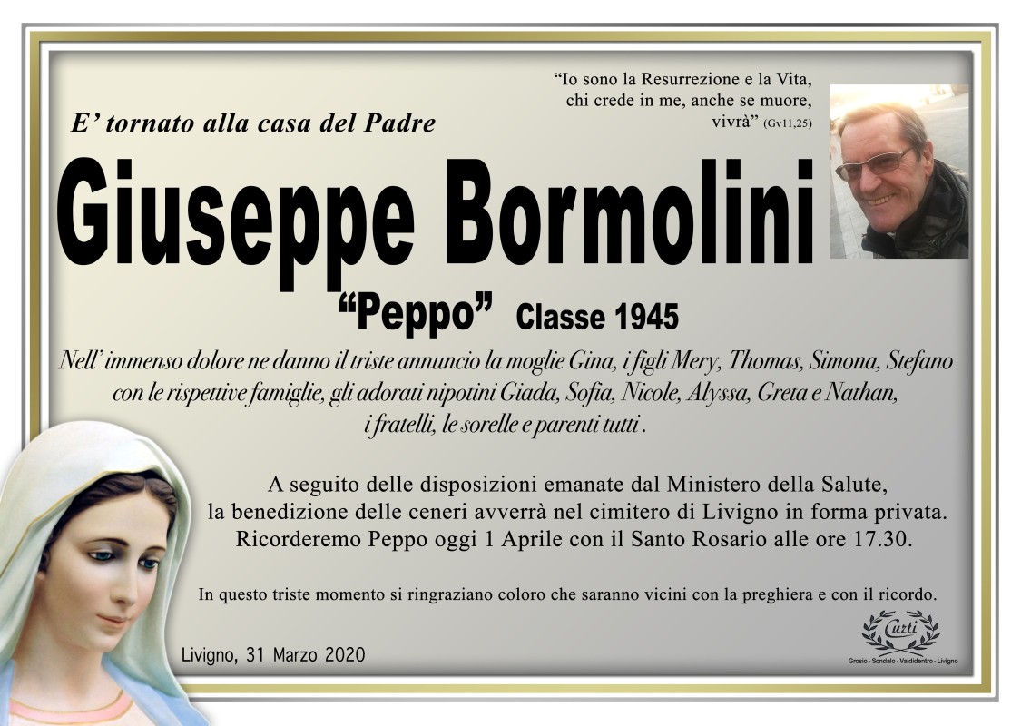 Lascia un messaggio di cordoglio, lo recapiteremo ai familiari di Lutto Bormolini Giuseppe