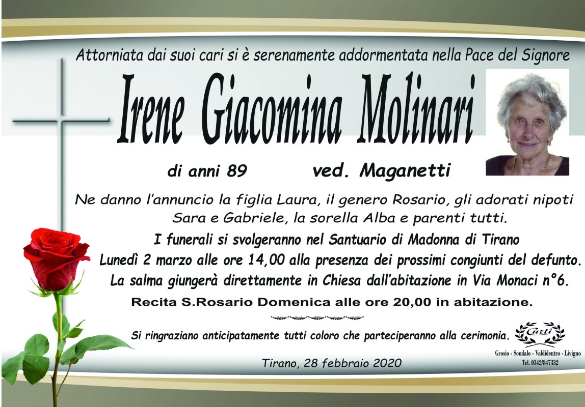 Lascia un messaggio di cordoglio, lo recapiteremo ai familiari di Molinari Irene Giacomina