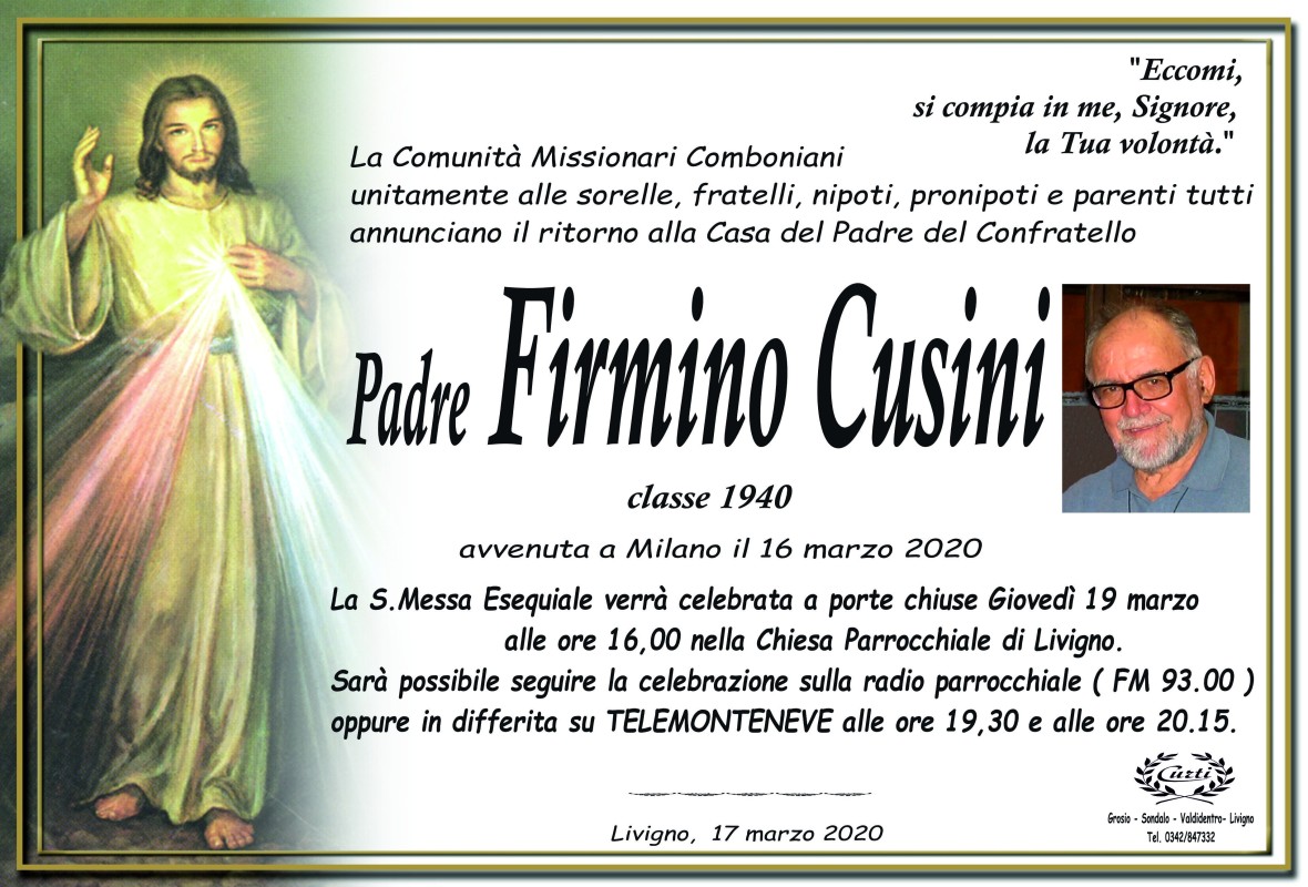 Lascia un messaggio di cordoglio, lo recapiteremo ai familiari di Padre Firmino Cusini