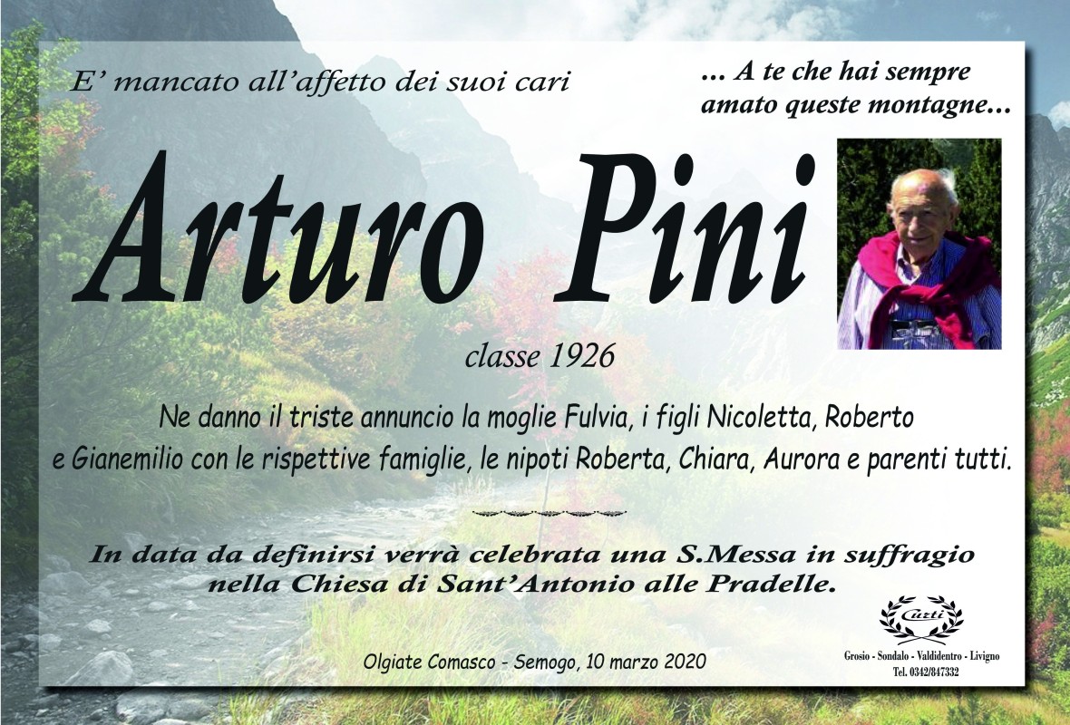 Lascia un messaggio di cordoglio, lo recapiteremo ai familiari di Pini Arturo