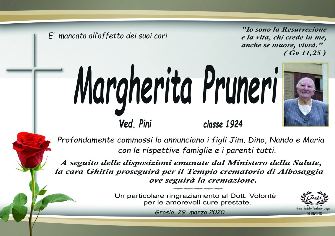 Lascia un messaggio di cordoglio, lo recapiteremo ai familiari di Pruneri Margherita