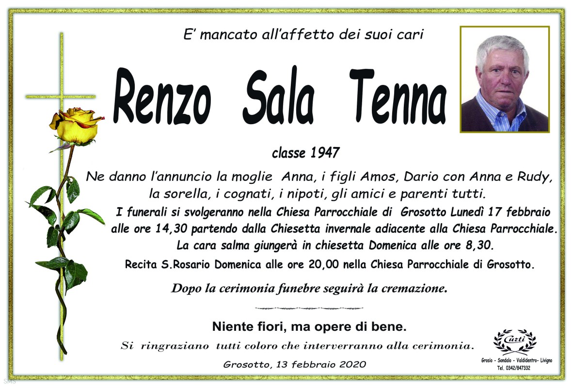 Lascia un messaggio di cordoglio, lo recapiteremo ai familiari di Sala Tenna Renzo
