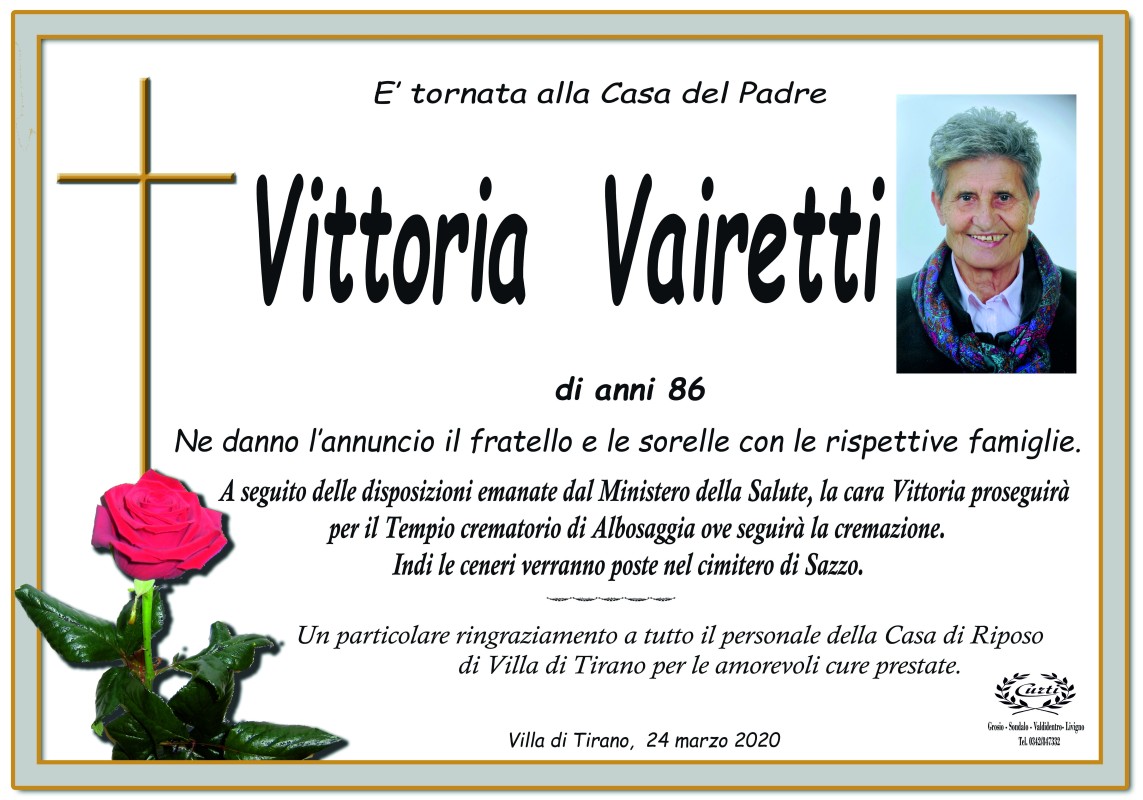 Lascia un messaggio di cordoglio, lo recapiteremo ai familiari di Vairetti Vittoria