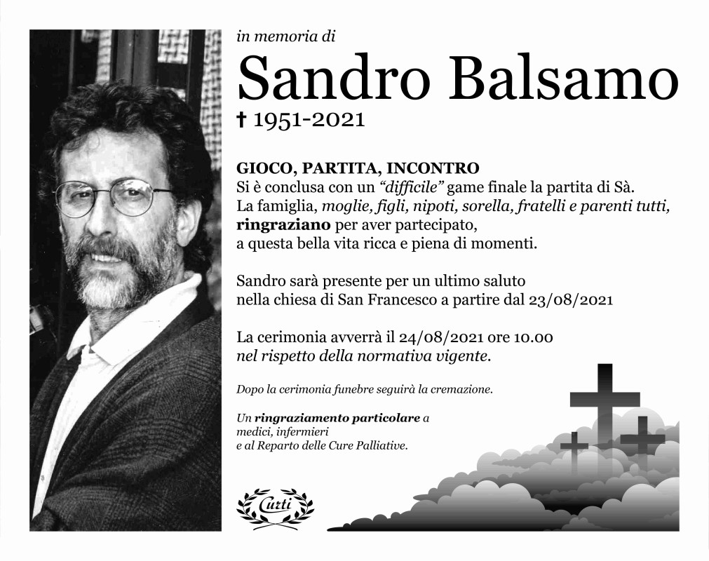 Lascia un messaggio di cordoglio, lo recapiteremo ai familiari di Balsamo Sandro