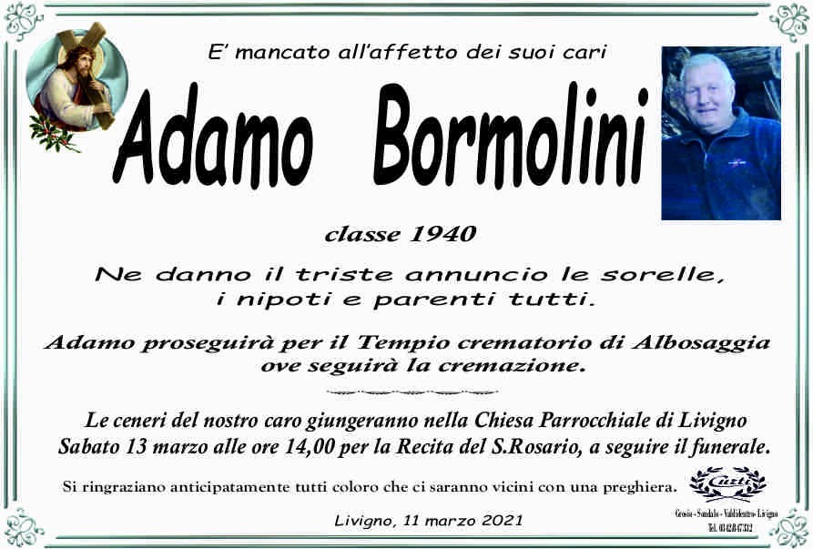 Lascia un messaggio di cordoglio, lo recapiteremo ai familiari di Bormolini Adamo