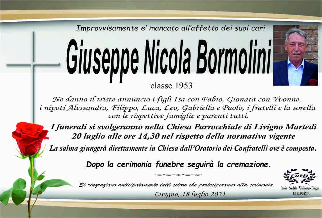 Lascia un messaggio di cordoglio, lo recapiteremo ai familiari di Bormolini Giuseppe Nicola