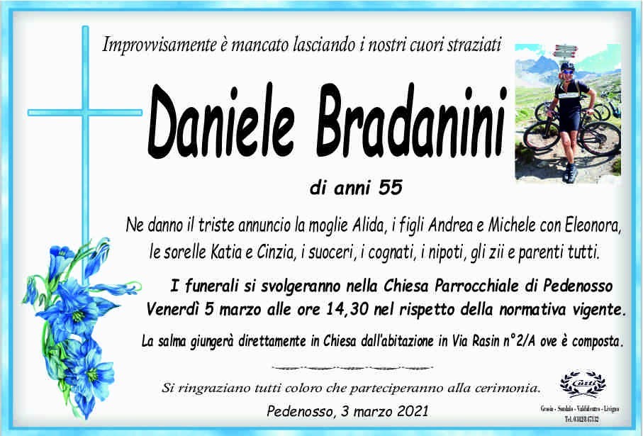 Lascia un messaggio di cordoglio, lo recapiteremo ai familiari di Bradanini Daniele