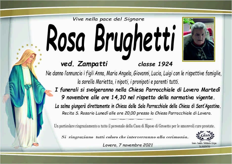 Lascia un messaggio di cordoglio, lo recapiteremo ai familiari di Brughetti Rosa