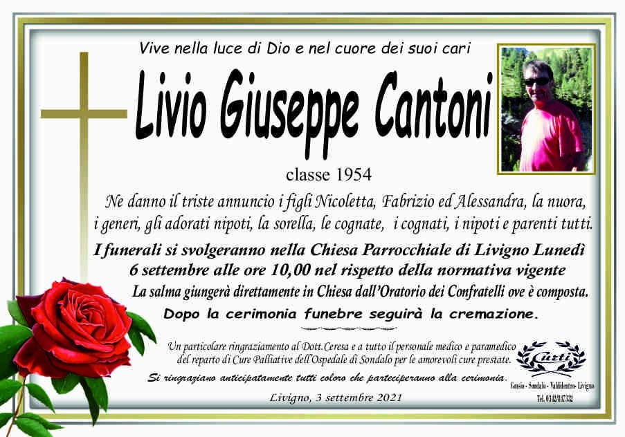 Lascia un messaggio di cordoglio, lo recapiteremo ai familiari di Cantoni Livio Giuseppe