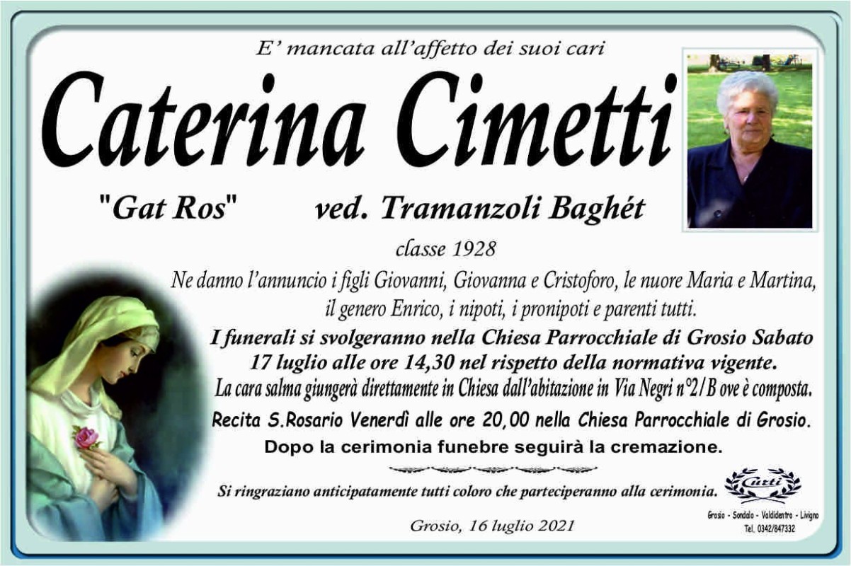 Lascia un messaggio di cordoglio, lo recapiteremo ai familiari di Cimetti Caterina