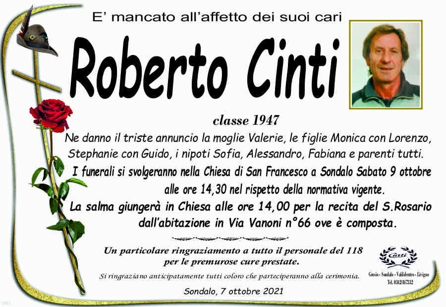 Lascia un messaggio di cordoglio, lo recapiteremo ai familiari di Cinti Roberto