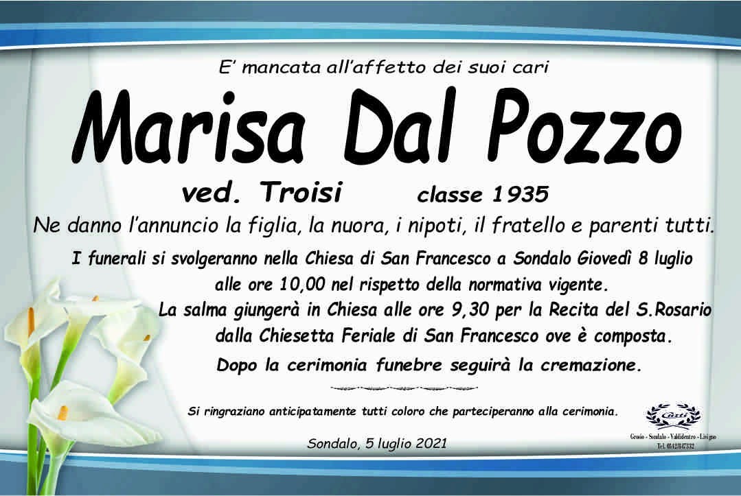 Lascia un messaggio di cordoglio, lo recapiteremo ai familiari di Dal Pozzo Marisa Amelia