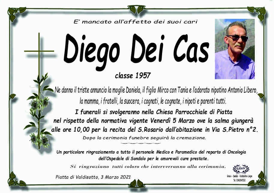 Lascia un messaggio di cordoglio, lo recapiteremo ai familiari di Dei Cas Diego