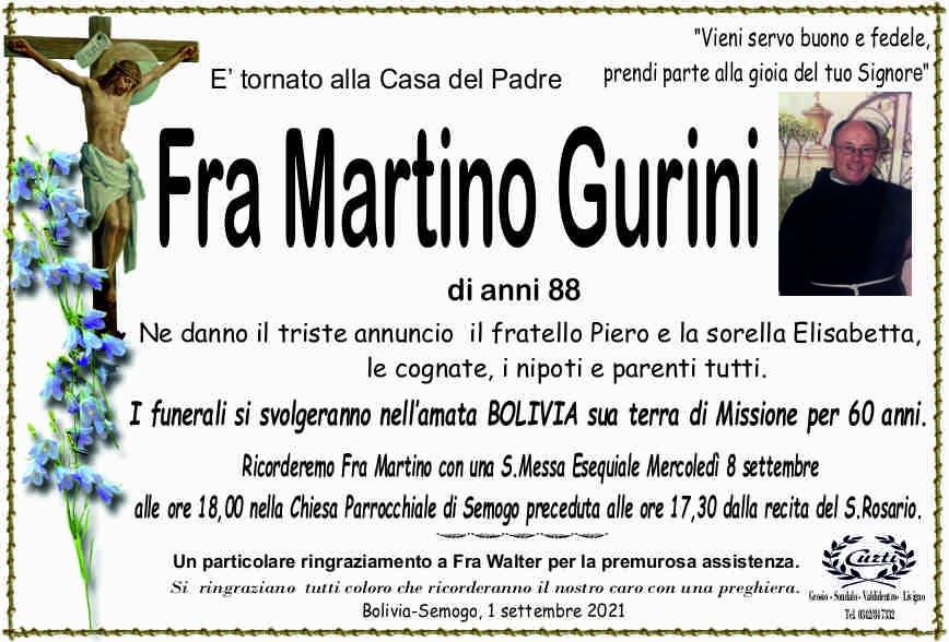 Lascia un messaggio di cordoglio, lo recapiteremo ai familiari di Fra Martino Gurini