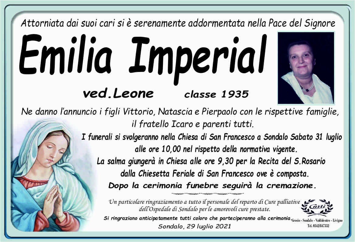 Lascia un messaggio di cordoglio, lo recapiteremo ai familiari di Imperial Emilia