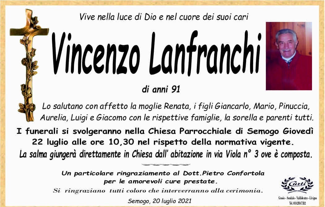 Lascia un messaggio di cordoglio, lo recapiteremo ai familiari di Lanfranchi Vincenzo
