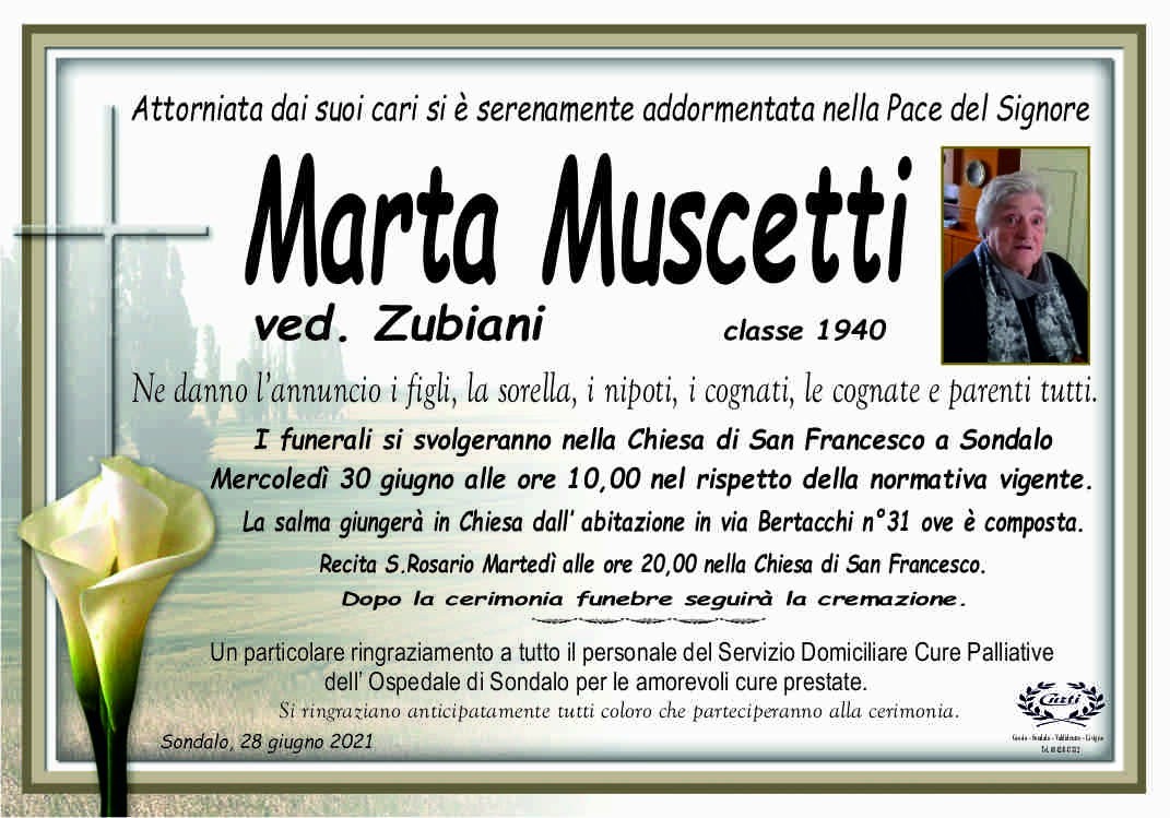 Lascia un messaggio di cordoglio, lo recapiteremo ai familiari di Lutto Muscetti Marta