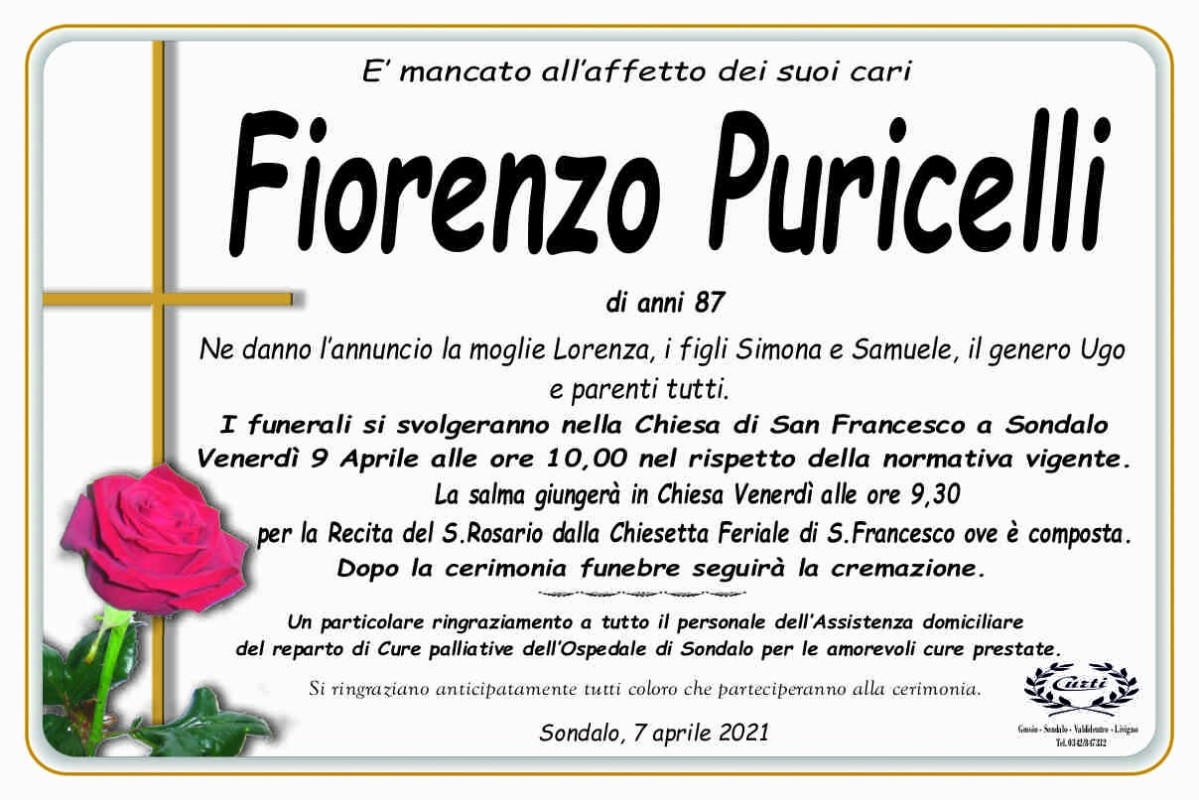 Lascia un messaggio di cordoglio, lo recapiteremo ai familiari di Lutto Puricelli Fiorenzo
