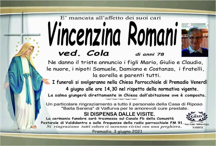 Lascia un messaggio di cordoglio, lo recapiteremo ai familiari di Lutto Romani Vincenzina