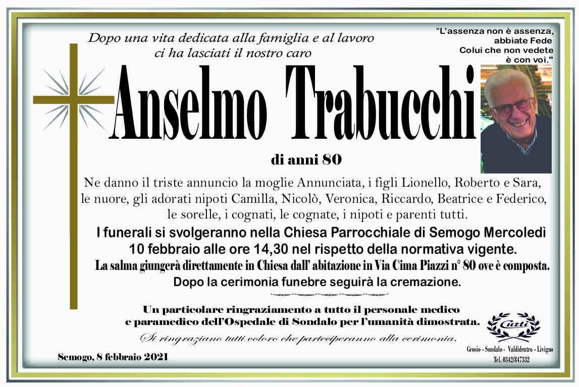 Lascia un messaggio di cordoglio, lo recapiteremo ai familiari di Trabucchi Anselmo