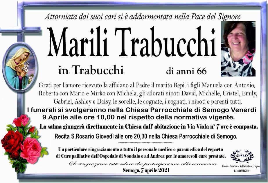 Lascia un messaggio di cordoglio, lo recapiteremo ai familiari di Trabucchi Marili