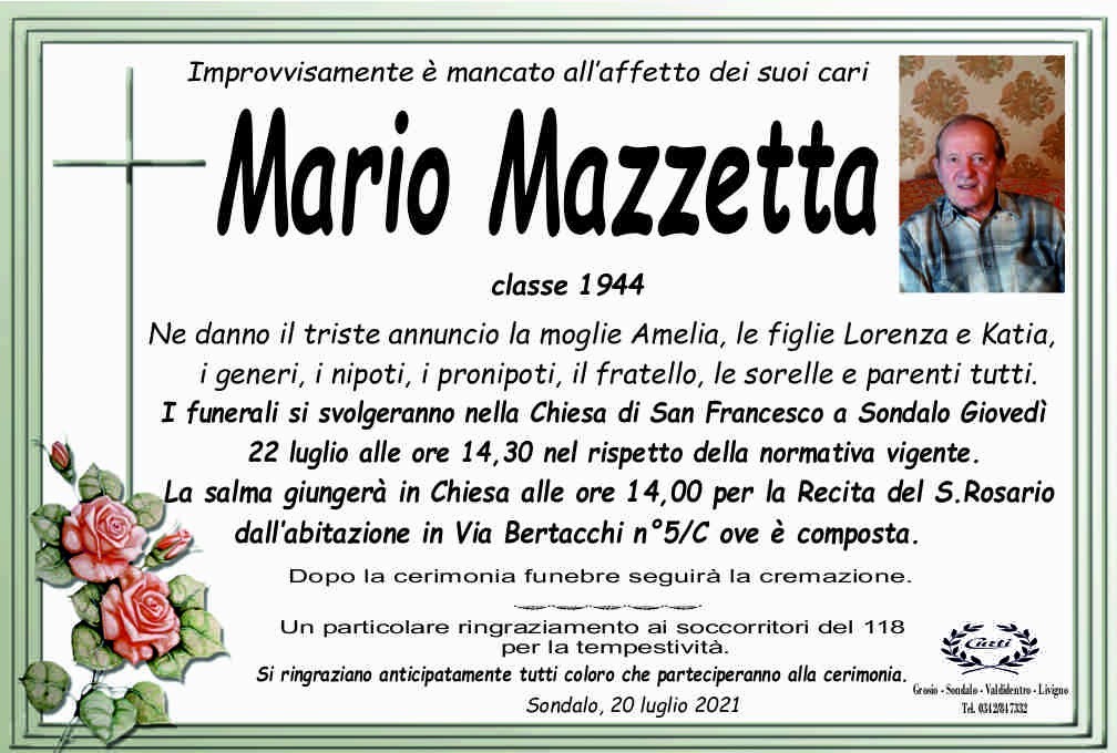 Lascia un messaggio di cordoglio, lo recapiteremo ai familiari di Mazzetta Mario