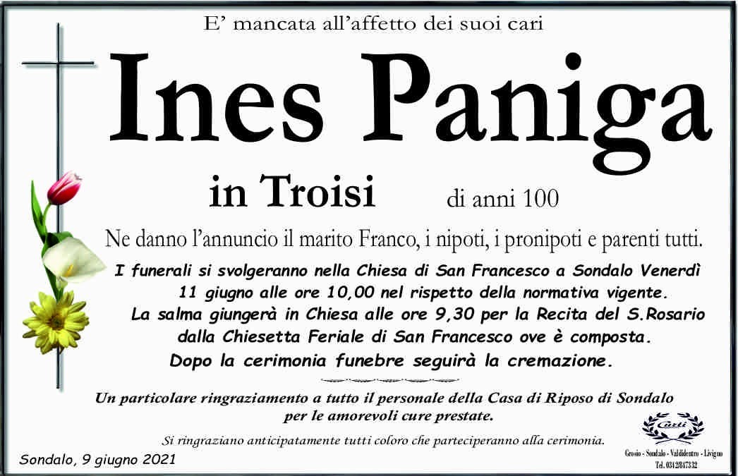 Lascia un messaggio di cordoglio, lo recapiteremo ai familiari di Paniga Ines