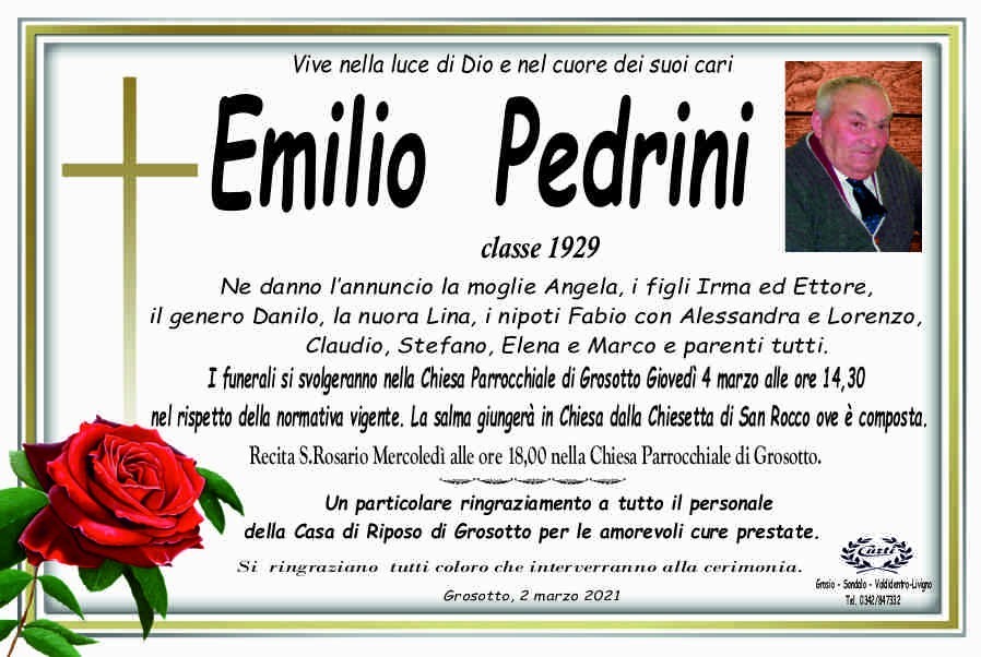 Lascia un messaggio di cordoglio, lo recapiteremo ai familiari di Pedrini Emilio