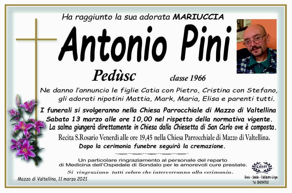 Lascia un messaggio di cordoglio, lo recapiteremo ai familiari di Pini Antonio