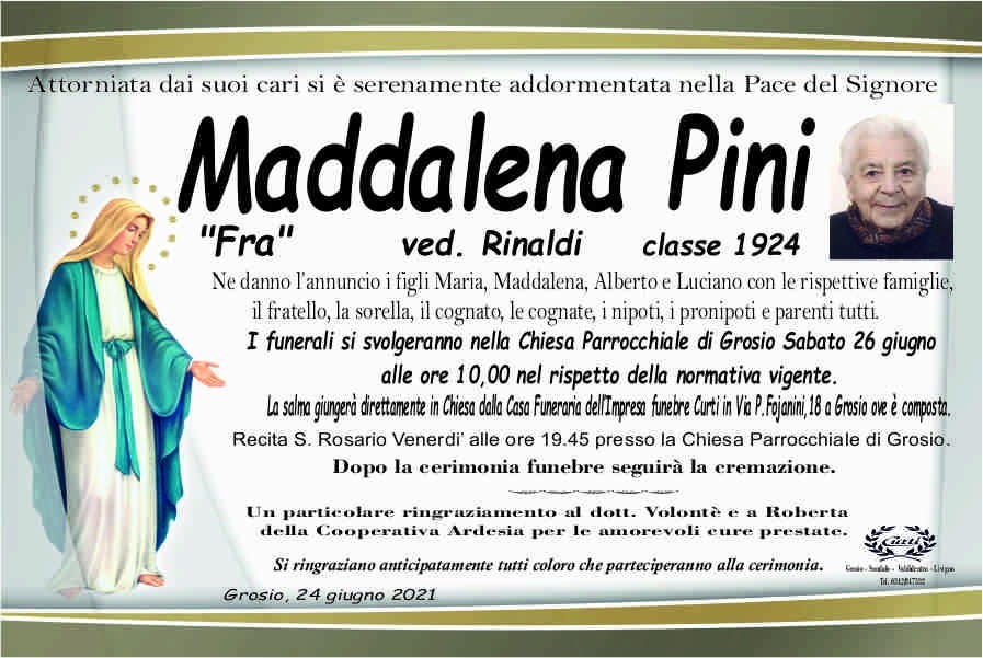 Lascia un messaggio di cordoglio, lo recapiteremo ai familiari di Pini Maddalena