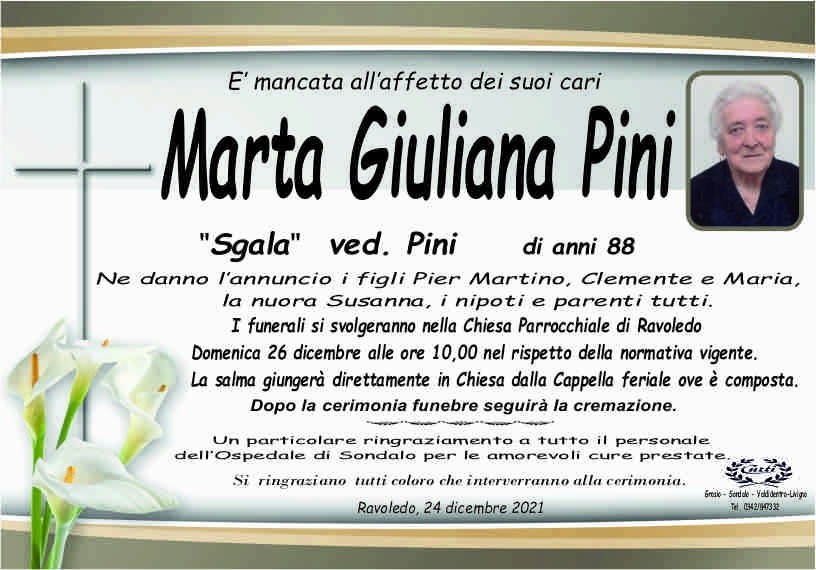 Lascia un messaggio di cordoglio, lo recapiteremo ai familiari di Pini Marta Giuliana