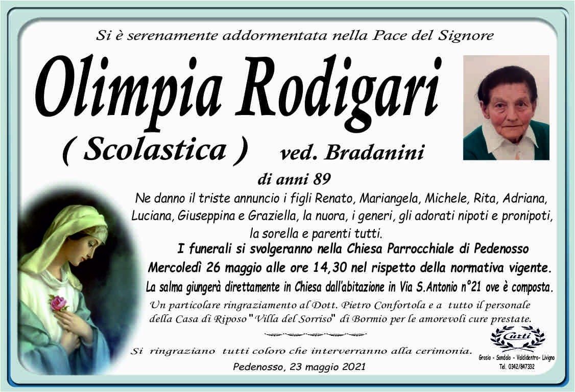 Lascia un messaggio di cordoglio, lo recapiteremo ai familiari di Rodigari Olimpia