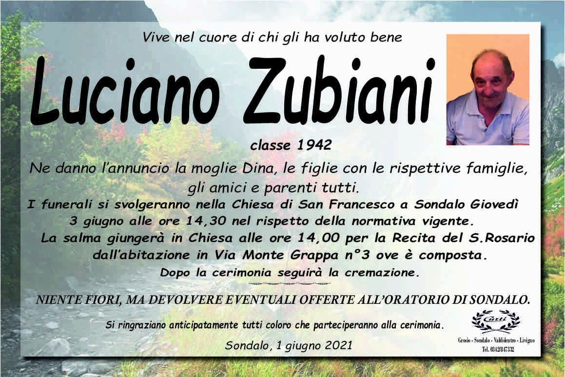 Lascia un messaggio di cordoglio, lo recapiteremo ai familiari di Zubiani Luciano