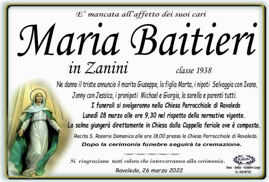 Lascia un messaggio di cordoglio, lo recapiteremo ai familiari di Baitieri Maria