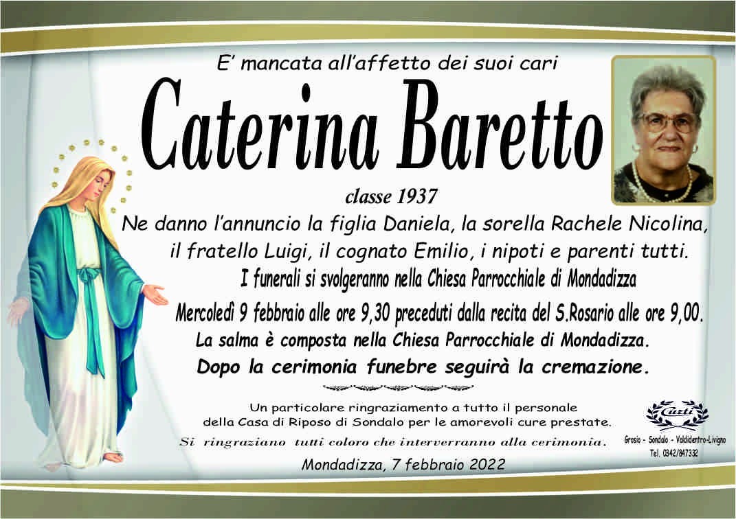Lascia un messaggio di cordoglio, lo recapiteremo ai familiari di Baretto Caterina