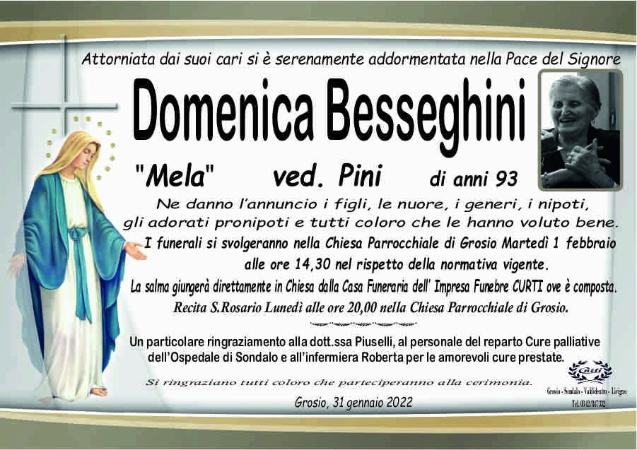 Lascia un messaggio di cordoglio, lo recapiteremo ai familiari di Besseghini Domenica