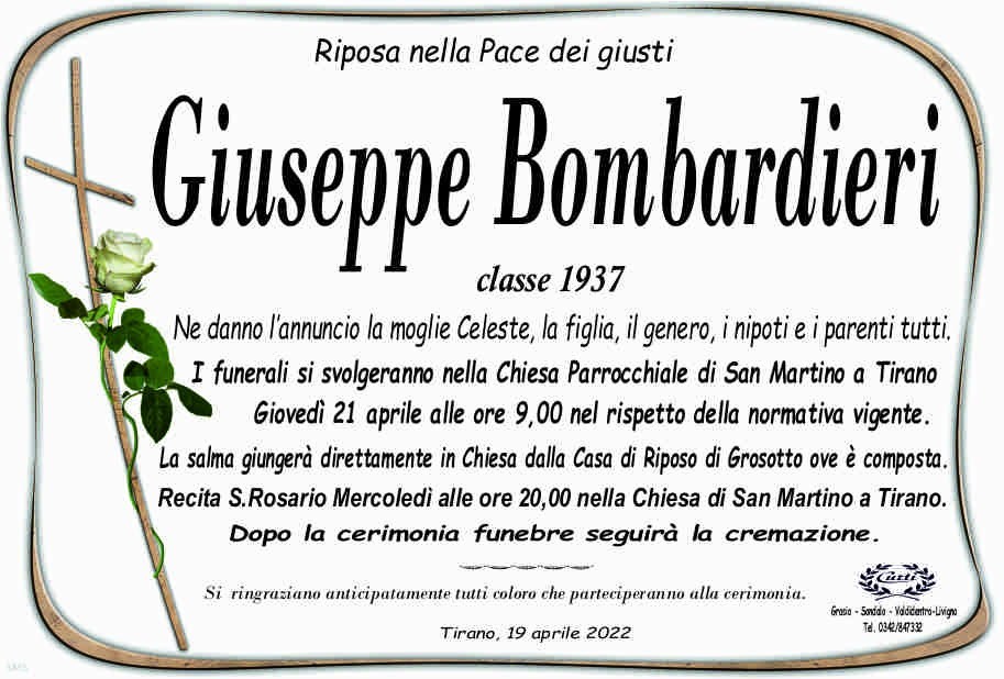 Lascia un messaggio di cordoglio, lo recapiteremo ai familiari di Bombardieri Giuseppe