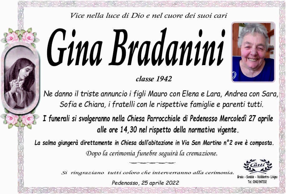 Lascia un messaggio di cordoglio, lo recapiteremo ai familiari di Bradanini Gina