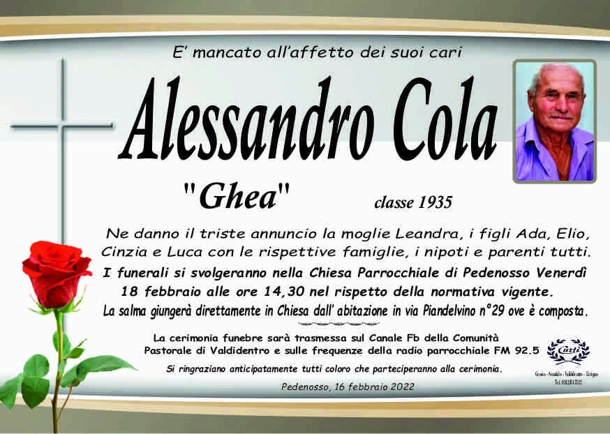Lascia un messaggio di cordoglio, lo recapiteremo ai familiari di Cola Alessandro