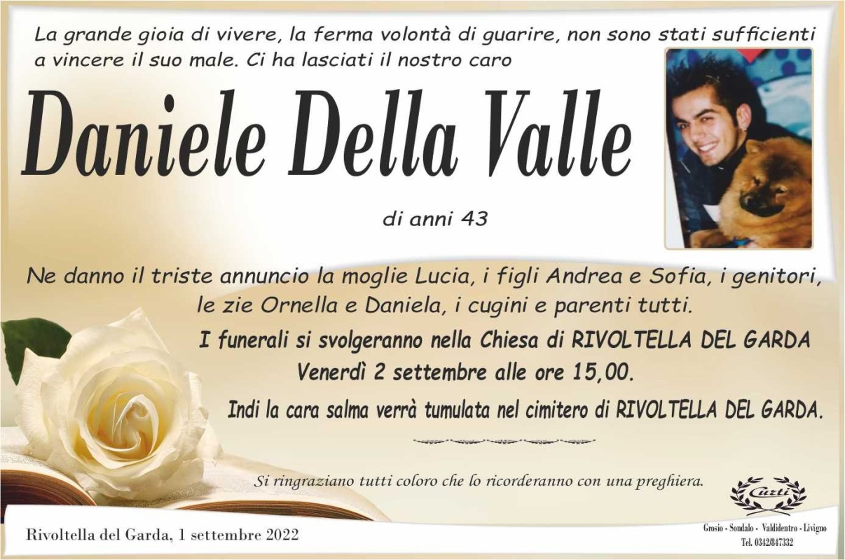 Lascia un messaggio di cordoglio, lo recapiteremo ai familiari di Della Valle Daniele