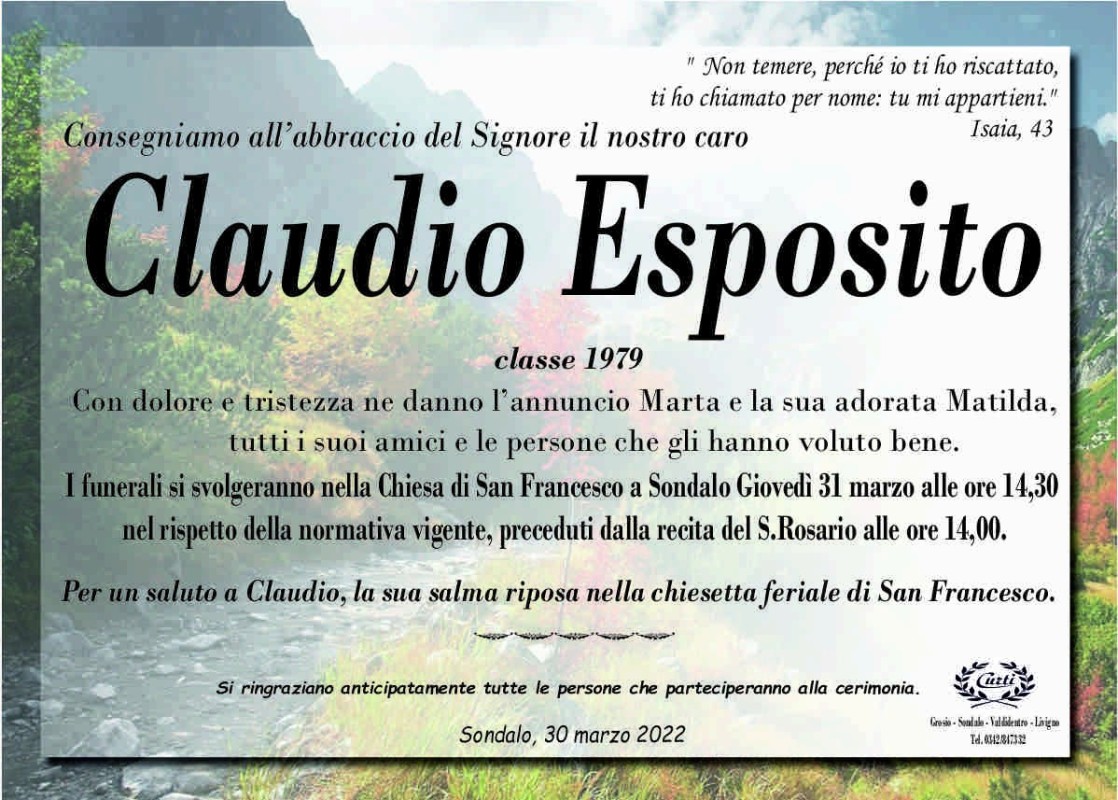 Lascia un messaggio di cordoglio, lo recapiteremo ai familiari di Esposito Claudio