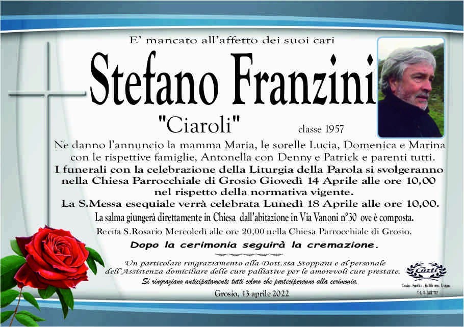 Lascia un messaggio di cordoglio, lo recapiteremo ai familiari di Franzini Stefano